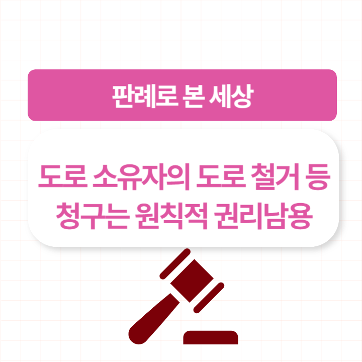 이번에 다룰 주제는 도로 소유자의 도로 철거 등 청구는 원칙적 권리남용 입니다.