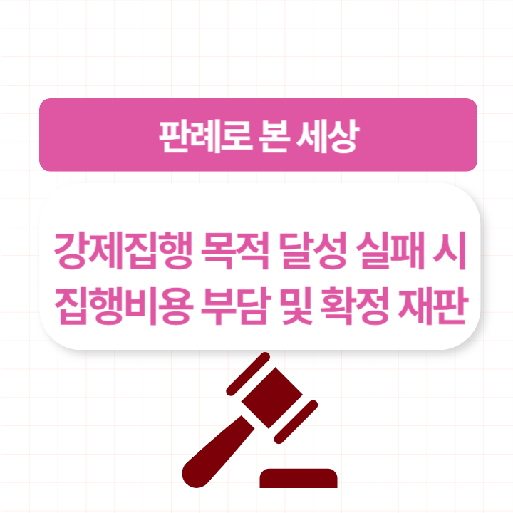이번 포스팅은 遵法精神 판례로 본 세상, 강제집행 목적 달성 실패 시 집행비용 부담 및 확정 재판 에 대해 알아보았습니다.