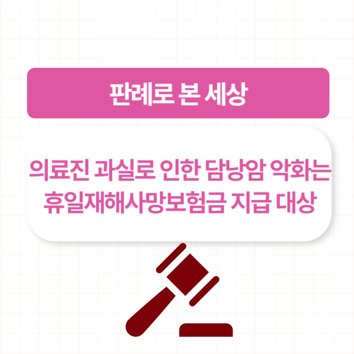 이번에 다룰 주제는 의료진 과실로 인한 담낭암 악화는 휴일재해사망보험금 지급 대상 입니다.