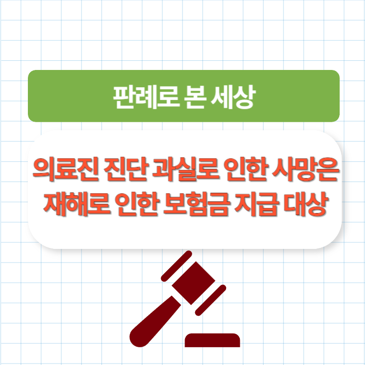 이번에 다룰 주제는 의료진 진단 과실로 인한 사망은 재해로 인한 보험금 지급 대상 입니다.