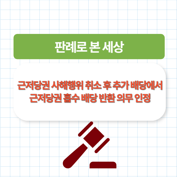 이번에 다룰 주제는 근저당권 사해행위 취소 후 추가 배당에서 근저당권 흡수 배당 반환 의무 인정 입니다.