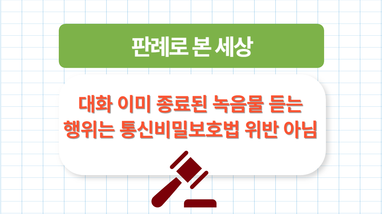 이번에 다룰 주제는 대화 이미 종료된 녹음물 듣는 행위는 통신비밀보호법 위반 아님 입니다.