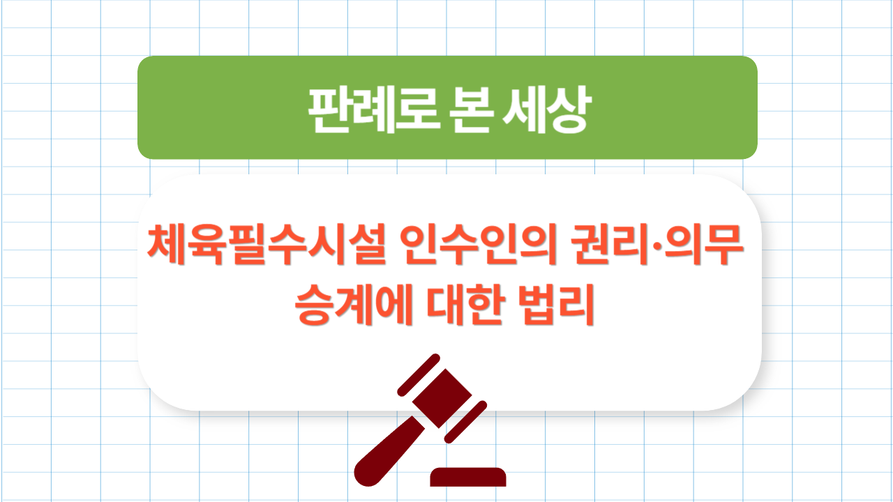 이번에 다룰 주제는 체육필수시설 인수인의 권리·의무 승계에 대한 법리 입니다.