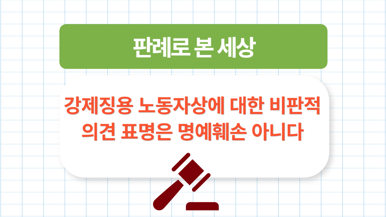 이번 포스팅은 遵法精神 판례로 본 세상, 강제징용 노동자상에 대한 비판적 의견 표명은 명예훼손 아니다 에 대해 알아보았습니다.