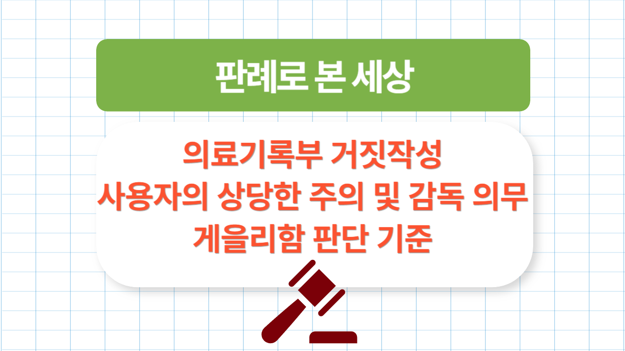이번에 다룰 주제는 의료기록부 거짓작성: 사용자의 상당한 주의 및 감독 의무 게을리함 판단 기준 입니다.