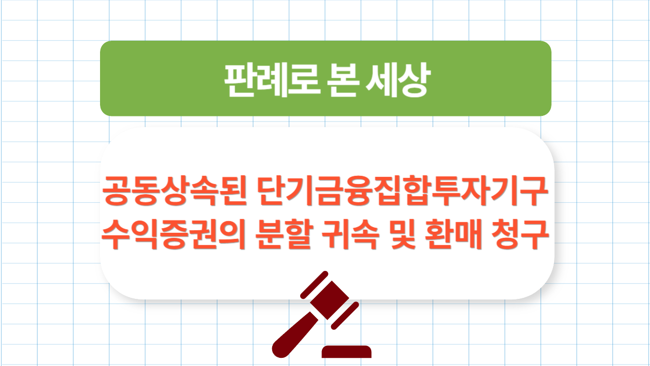이번 포스팅은 遵法精神 판례로 본 세상, 공동상속된 단기금융집합투자기구 수익증권의 분할 귀속 및 환매 청구 에 대해 알아보았습니다.