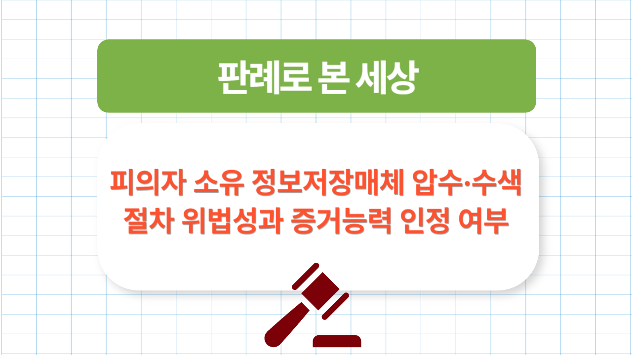 이번에 다룰 주제는 피의자 소유 정보저장매체 압수·수색 절차 위법성과 증거능력 인정 여부 입니다.