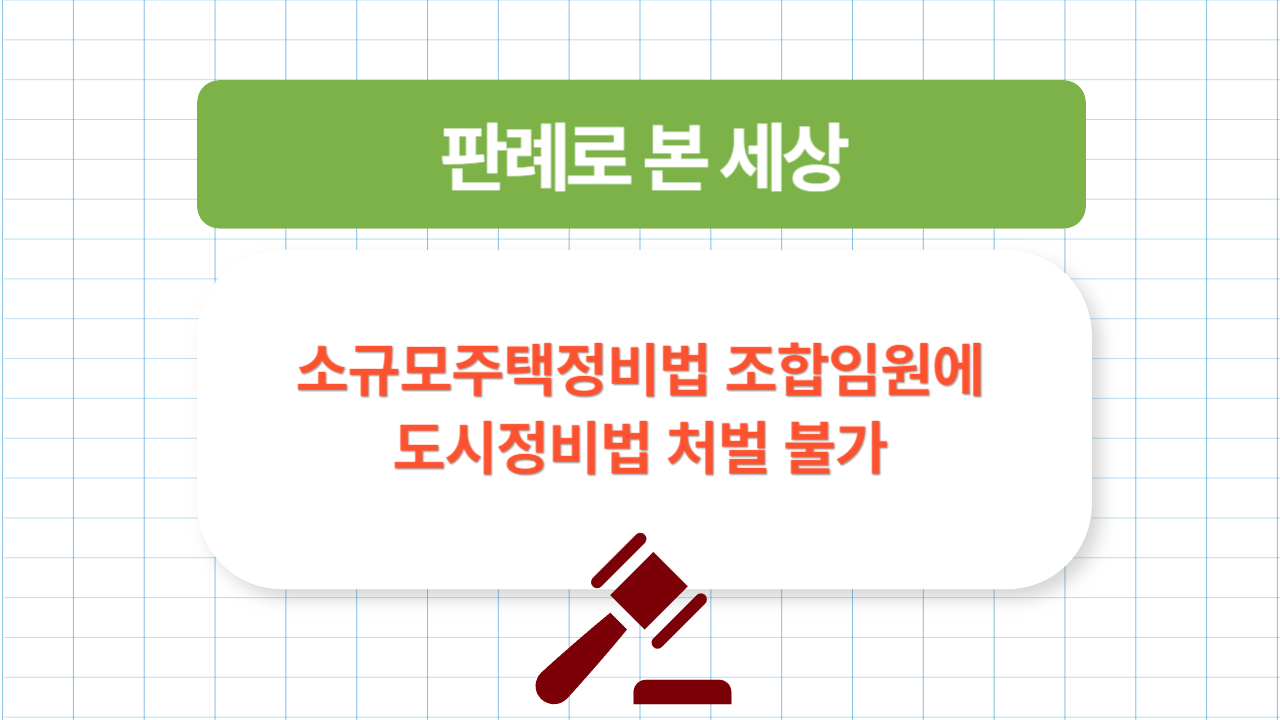 이번에 다룰 주제는 소규모주택정비법 조합임원에 도시정비법 처벌 불가 입니다.