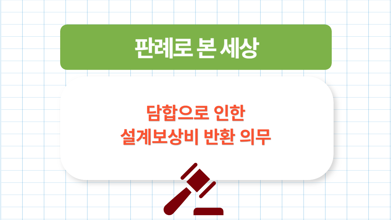 이번에 다룰 주제는 담합으로 인한 설계보상비 반환 의무 입니다.