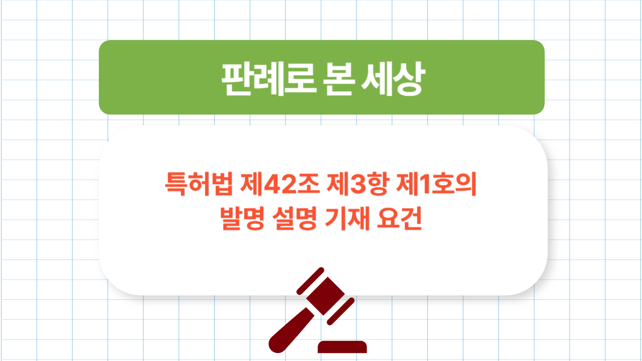 이번에 다룰 주제는 특허법 제42조 제3항 제1호의 발명 설명 기재 요건 입니다.