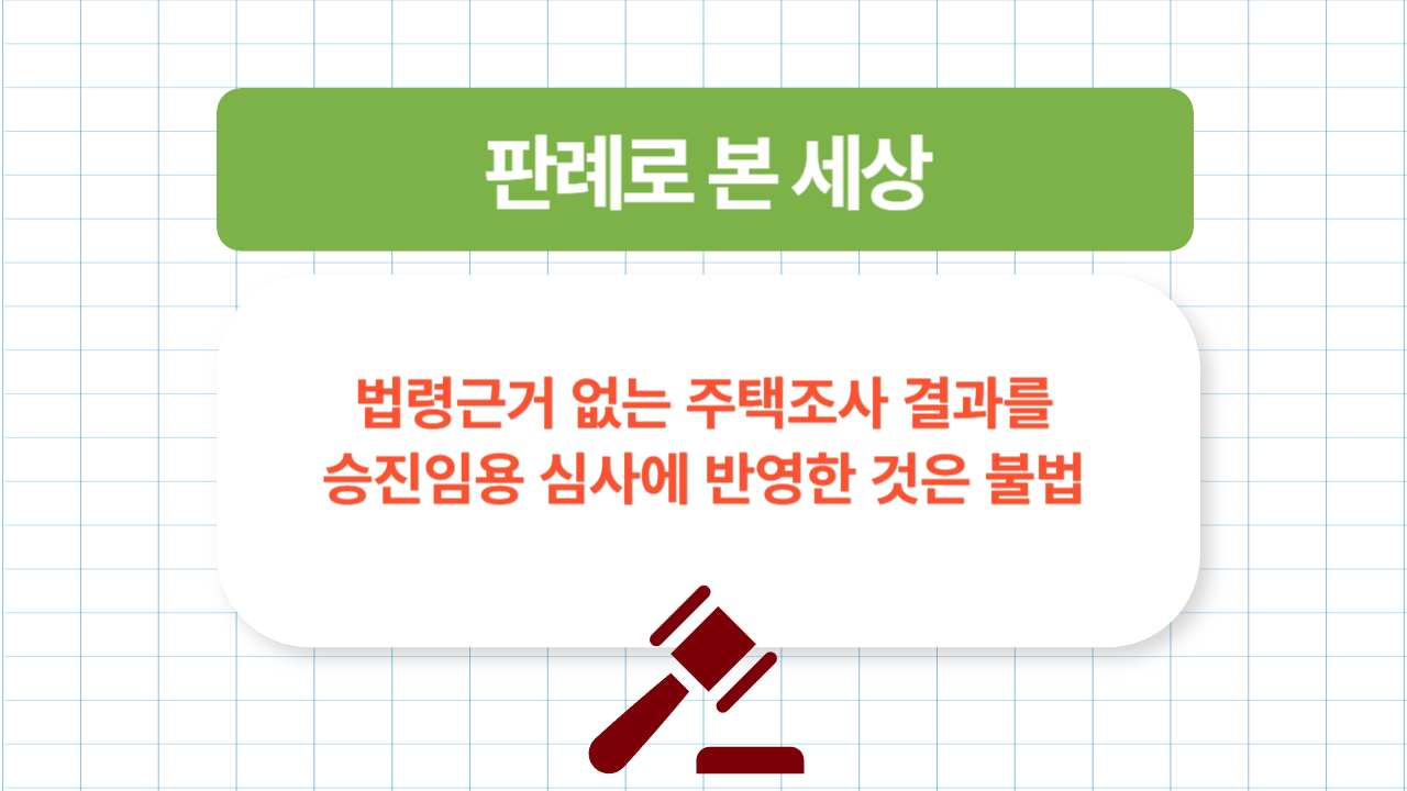 이번에 다룰 주제는 법령근거 없는 주택조사 결과를 승진임용 심사에 반영한 것은 불법 입니다.