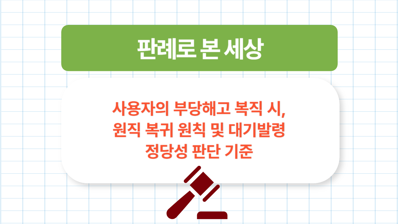 이번에 다룰 주제는 사용자의 부당해고 복직 시, 원직 복귀 원칙 및 대기발령 정당성 판단 기준 입니다.