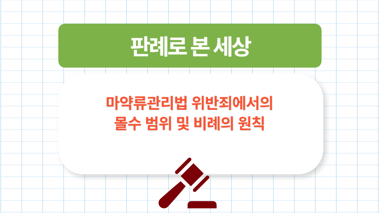 이번에 다룰 주제는 마약류관리법 위반죄에서의 몰수 범위 및 비례의 원칙 입니다.