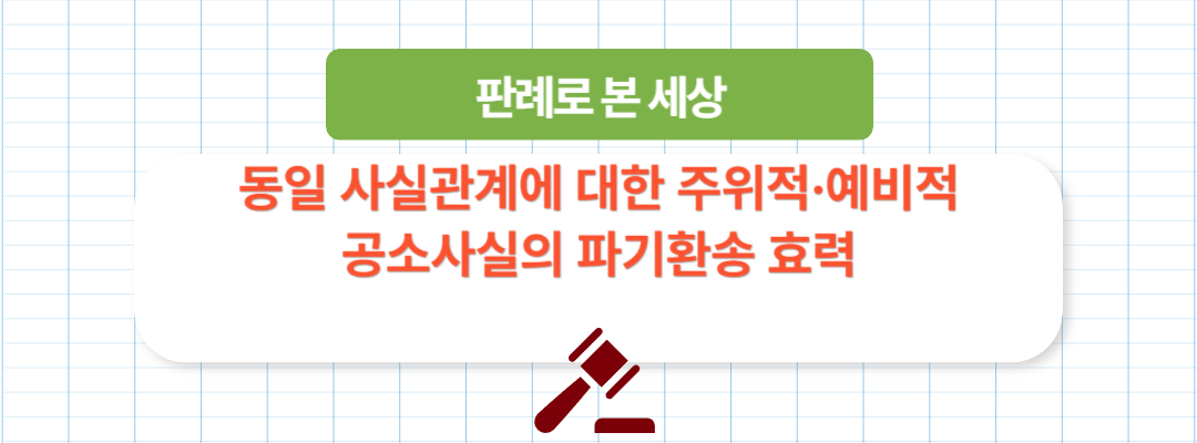 이번에 다룰 주제는 동일 사실관계에 대한 주위적·예비적 공소사실의 파기환송 효력 입니다.