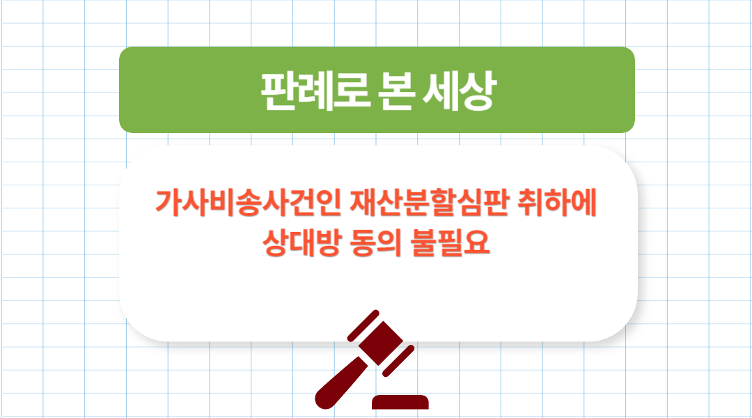 이번에 다룰 주제는 가사비송사건인 재산분할심판 취하에 상대방 동의 불필요 입니다.