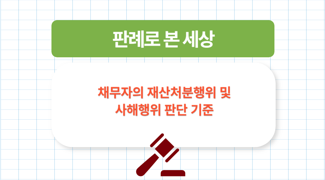 이번에 다룰 주제는 채무자의 재산처분행위 및 사해행위 판단 기준 입니다.