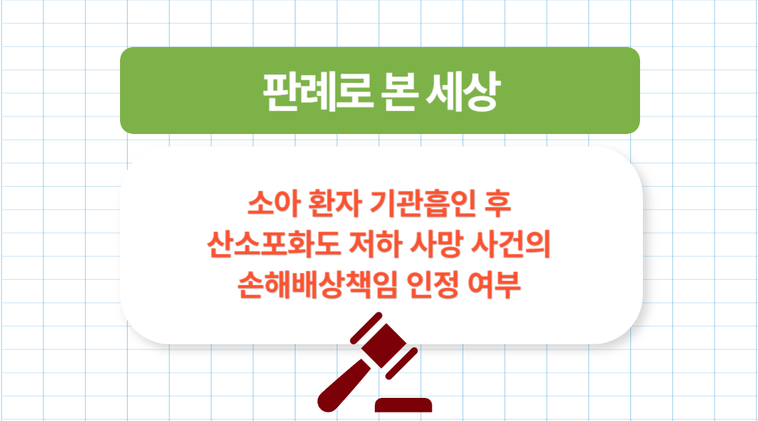이번에 다룰 주제는 소아 환자 기관흡인 후 산소포화도 저하 사망 사건의 손해배상책임 인정 여부 입니다.
