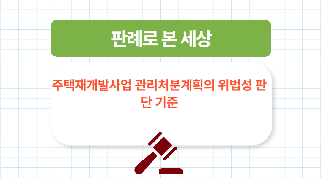 이번 포스팅은 遵法精神의 판례로 본 세상, 주택재개발사업 관리처분계획의 위법성 판단 기준 에 대해 알아보았습니다.