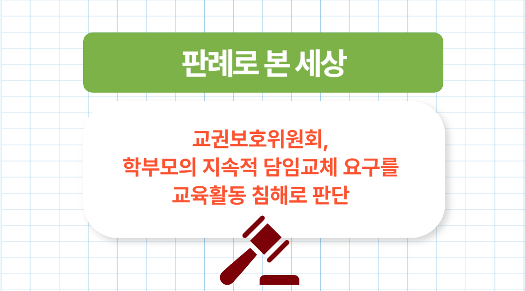 이번에 다룰 주제는 교권보호위원회, 학부모의 지속적 담임교체 요구를 교육활동 침해로 판단 입니다.