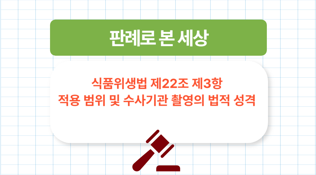 이번에 다룰 주제는 식품위생법 제22조 제3항 적용 범위 및 수사기관 촬영의 법적 성격 입니다.