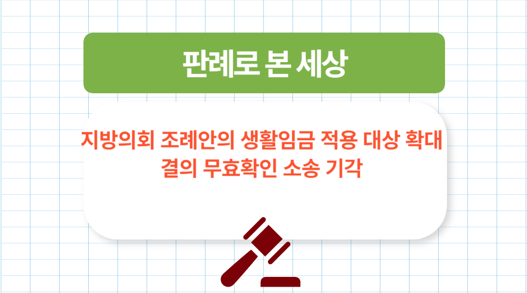이번에 다룰 주제는 지방의회 조례안의 생활임금 적용 대상 확대 결의 무효확인 소송 기각 입니다.