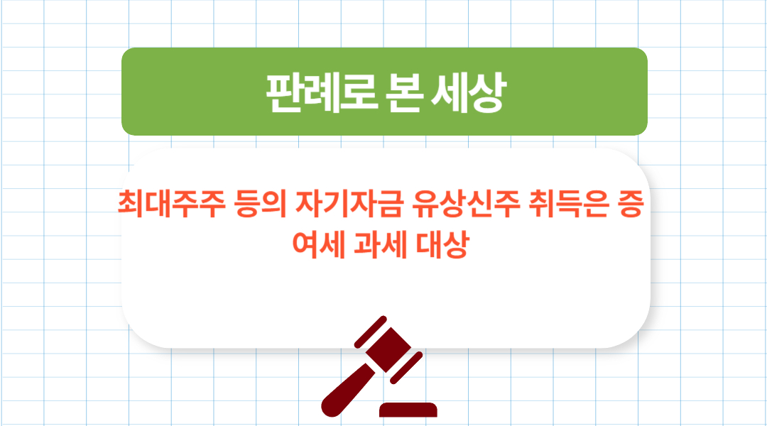 이번 포스팅은 遵法精神 판례로 본 세상, 최대주주 등의 자기자금 유상신주 취득은 증여세 과세 대상 에 대해 알아보았습니다.