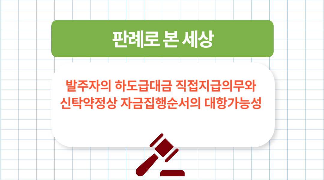 이번에 다룰 주제는 발주자의 하도급대금 직접지급의무와 신탁약정상 자금집행순서의 대항가능성 입니다.