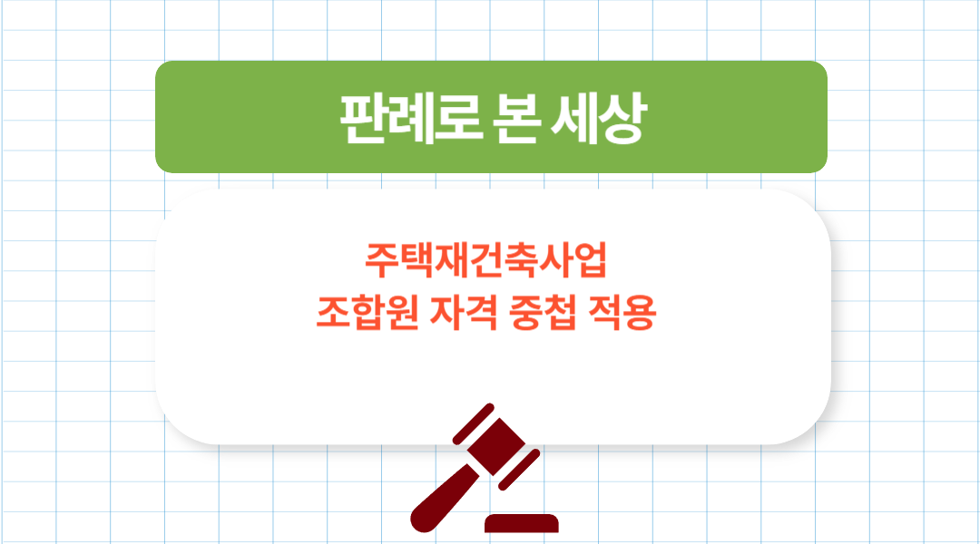 이번에 다룰 주제는 주택재건축사업 조합원 자격 중첩 적용 입니다.