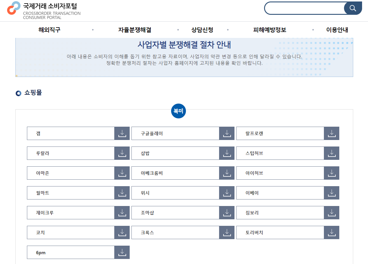 국제거래 소비자포털에서 각 사이트 별 분쟁해결 절차 안내되어있습니다.