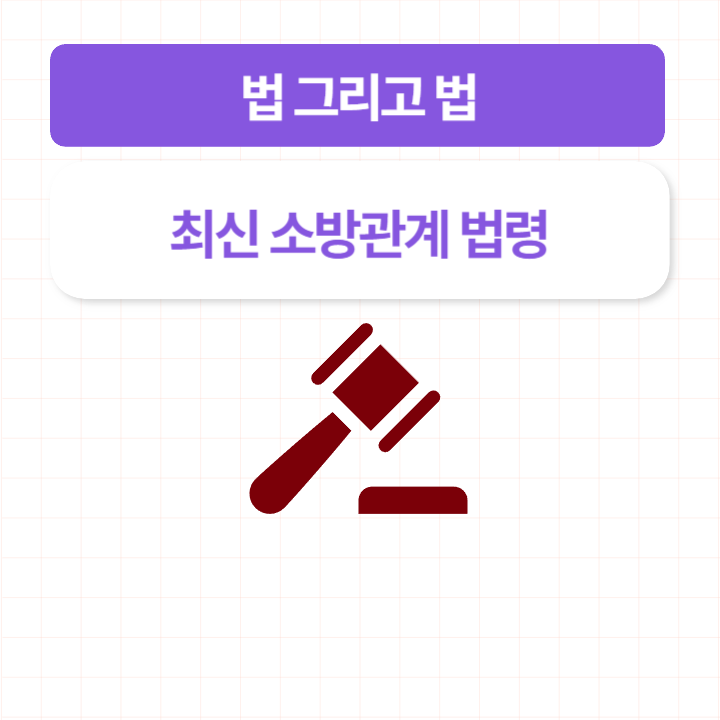 안녕하세요 遵法精神의 법 그리고 법입니다. 이번에 다룰 주제는최신 소방관계법령입니다.